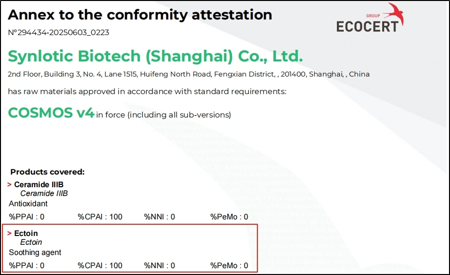 A Shanghai Yunluo által gyártott Yikeduoyin a közelmúltban megszerezte a francia ECOCERT által kiadott EU COSMOS természetes tanúsítványt.